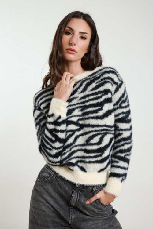Zebra Sweater Boat Neckline Furry Effect.100%pl
