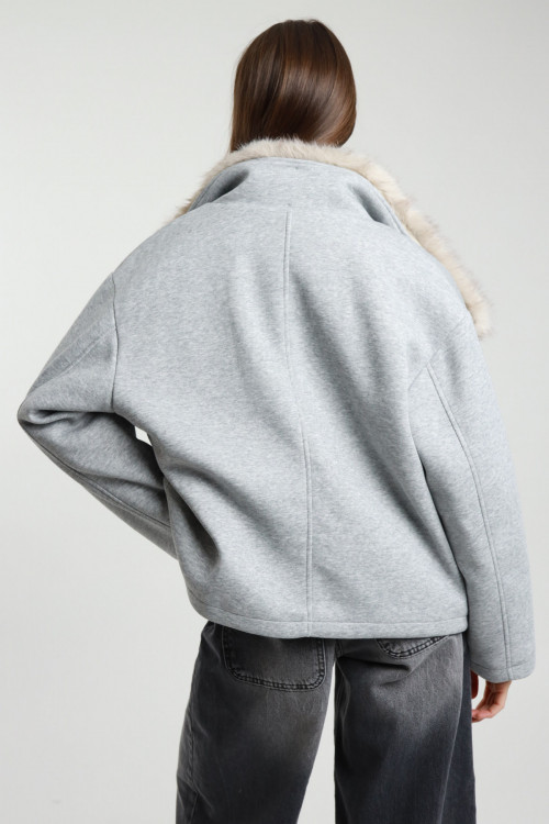 Sweatshirt jacket with faux fur neckline. Zip closure. 65%co 35%pl