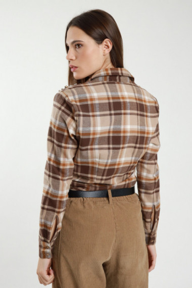 Camicia a Scatola in Fantasia Check con Dettaglio Applicazioni Borchie e Strass.