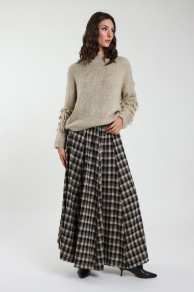 Long Wide Checked Skirt. 65%pl 35%co