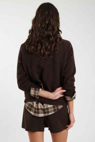 Maglia Girocollo in Jacquard con Fantasia Quadri Tartan Scozzese.
