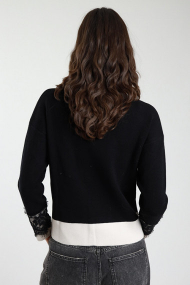 Maglione Girocollo con Dettaglio Paillettes sul Fronte.