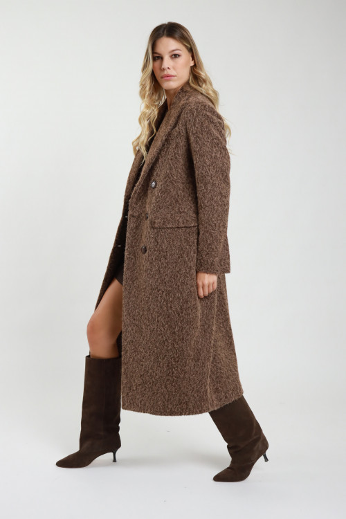 Coat With Fringed Applications On The Pockets And On The Back. 58%wo 48%pl+100%pl