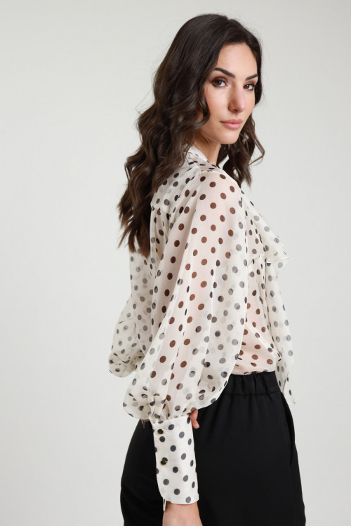 Camicia Pitonata con Cut-Out sul Collo e Laccio. Fiocco sui Polsini.