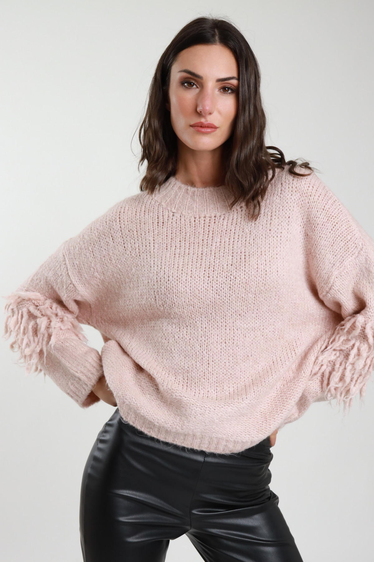 Turtleneck With Fringes On The Sleeves. 62%pc 18%pl 8%wo 8%vi 4%wp