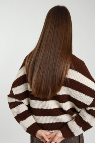Striped sweater, ribbed V-neck. 100%pc