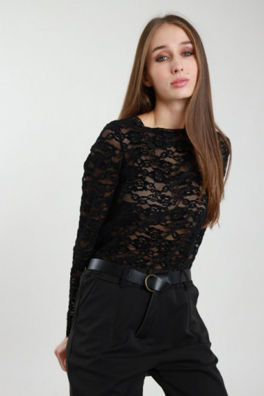 Long-sleeved lace shirt with boat neckline. 50%pl 40%ny 10%ea