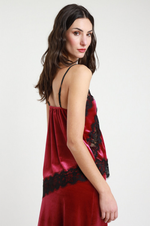 Top Spalline Strette Asimmetrico in Ciniglia con Pizzo sul Fronte e sul Fondo.