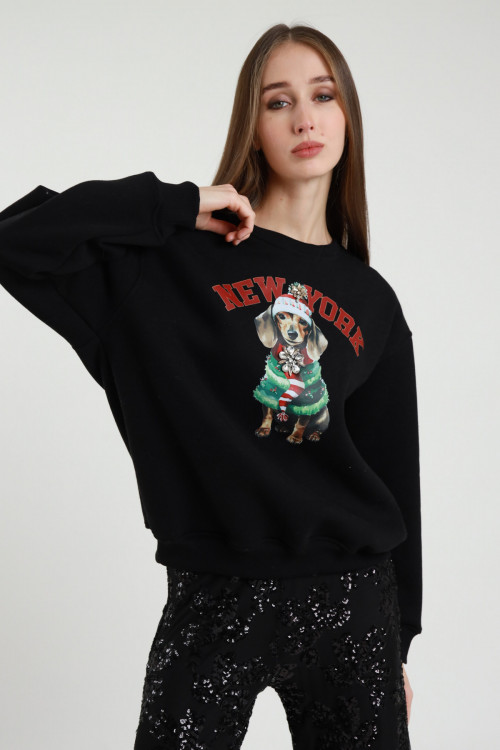 Felpa Over Girocollo con Stampa Natalizia ''Orsetto'' e Strass.