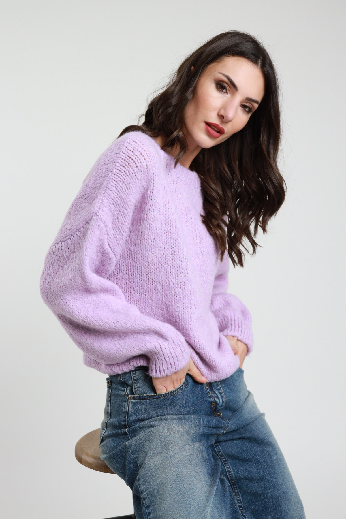 Pullover mit Rundhalsausschnitt, Raglanschnitt und gerippten Säumen. 52 %vi 26 %pbt 22 %ny