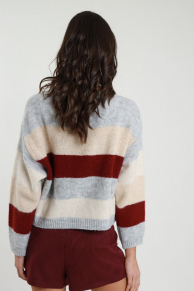 Maglione Girocollo con Sciarpa a Righe Rimovibile.