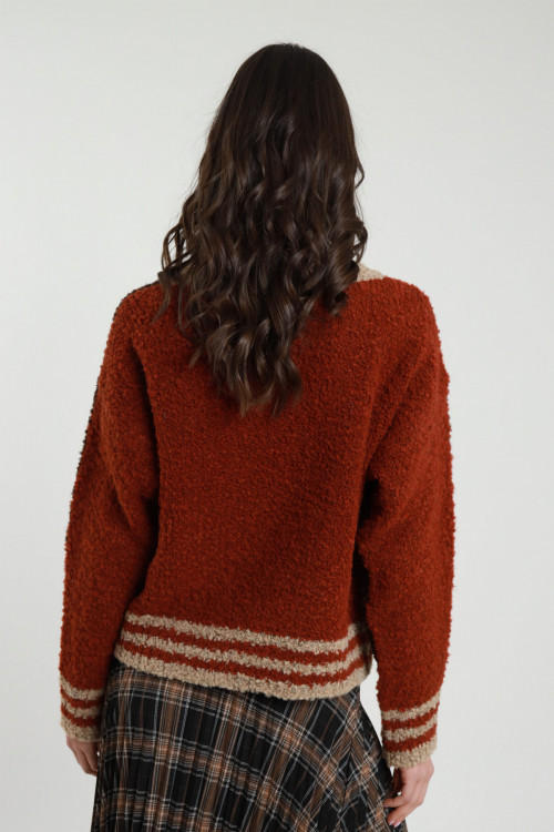 Maglione Girocollo con Sciarpa a Righe Rimovibile.