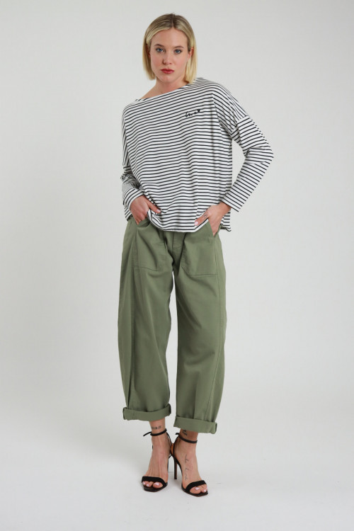 Pantalone Ovetto con Tasconi sul Fronte, Cintura e Ciondolo Stellina.