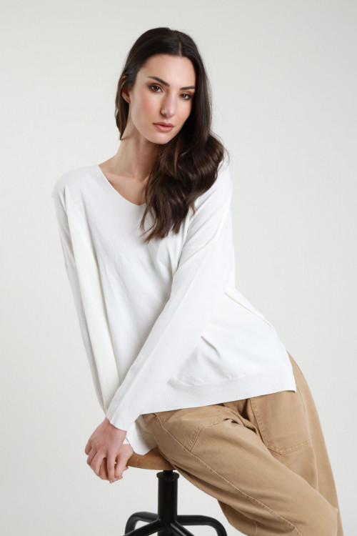Pullover aus Viskose, V-Ausschnitt mit Ausschnitt an den Schultern. 65 % vi 35 % pa