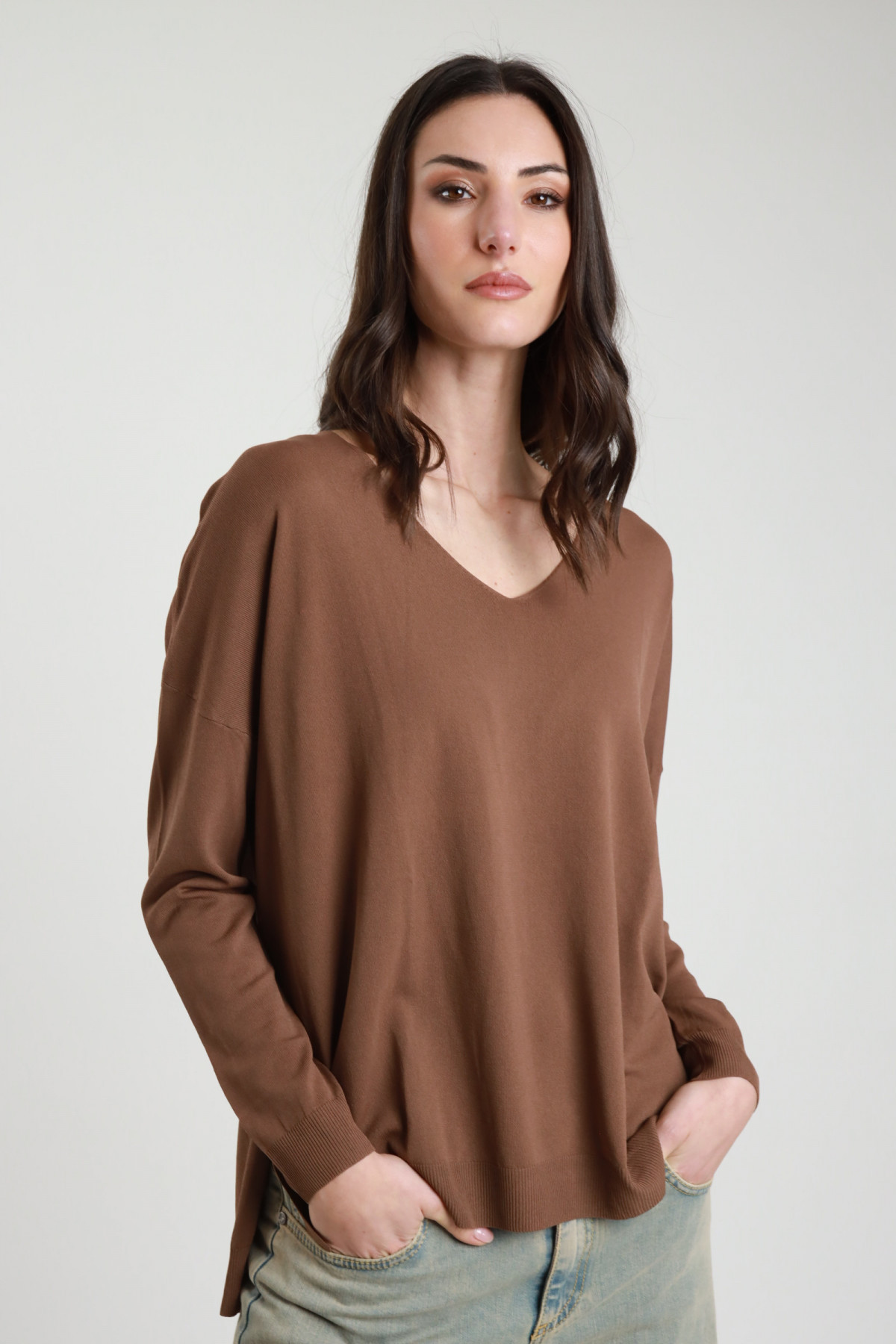 Pullover aus Viskose, V-Ausschnitt mit Ausschnitt an den Schultern. 65 % vi 35 % pa