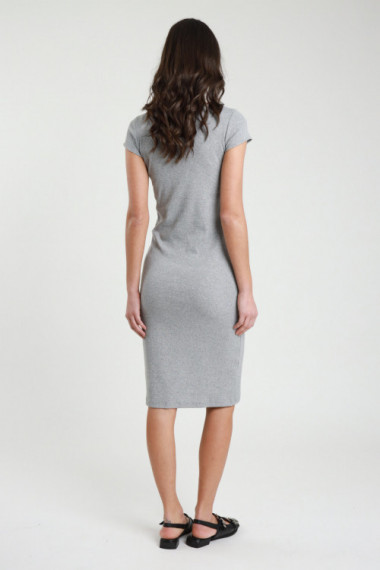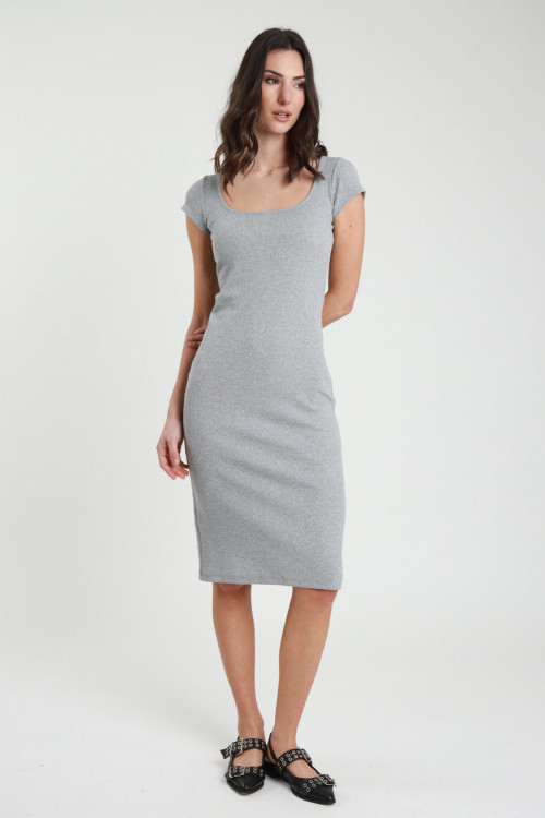 Tubino Elasticizzato Midi a Costine, Maniche Corte.