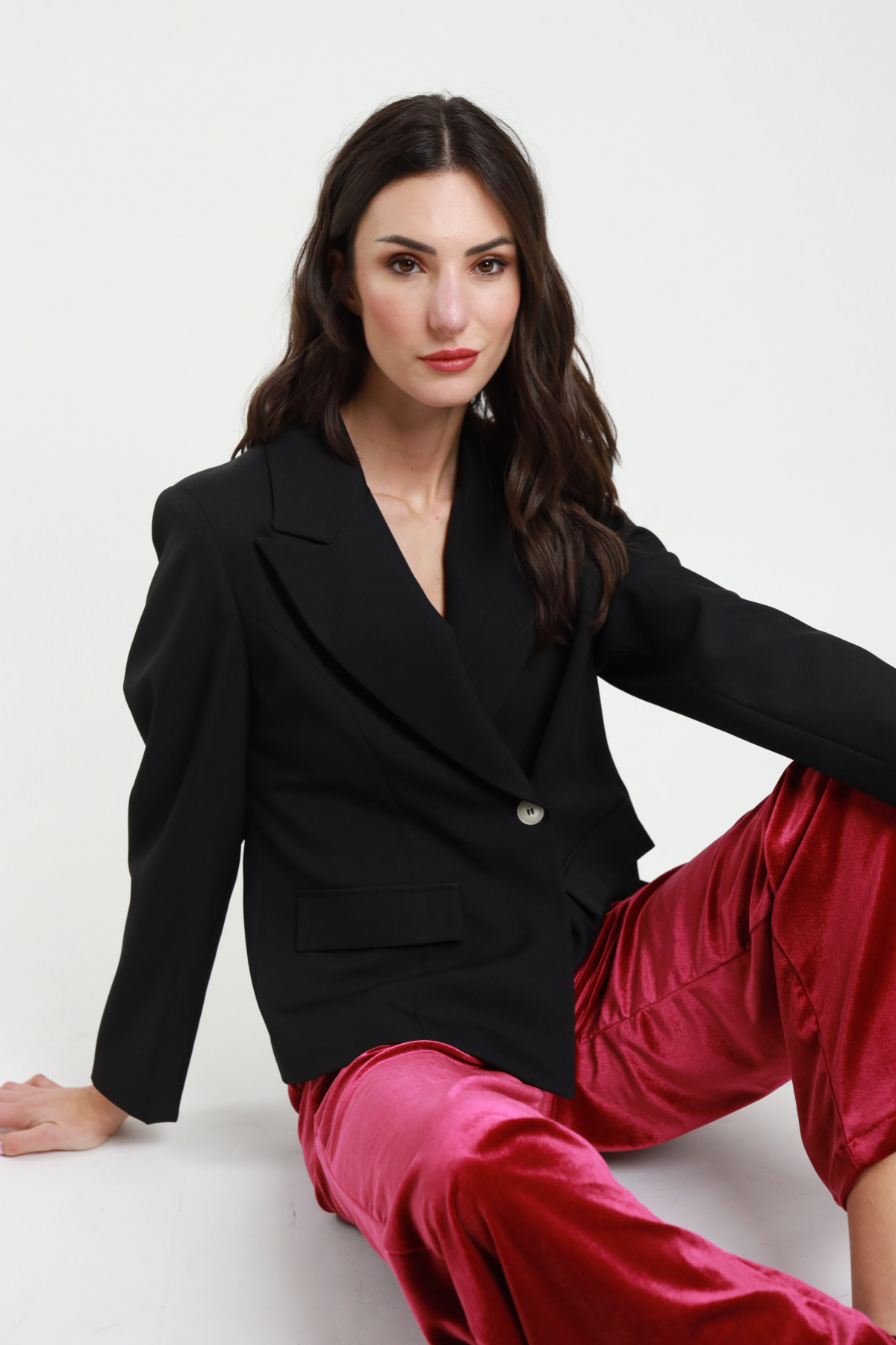 Blazer a Clessidra con Doppio Bottone, Tasche Filetto con Pattina.