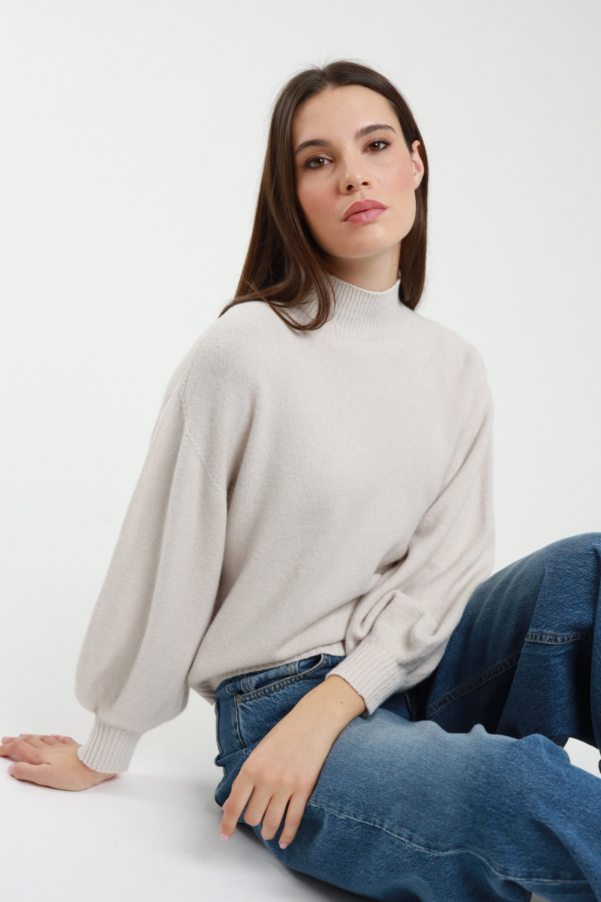 Lupetto con Maniche Palloncino e Bordi a Costine.