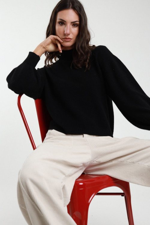 Lupetto con Maniche Palloncino e Bordi a Costine.