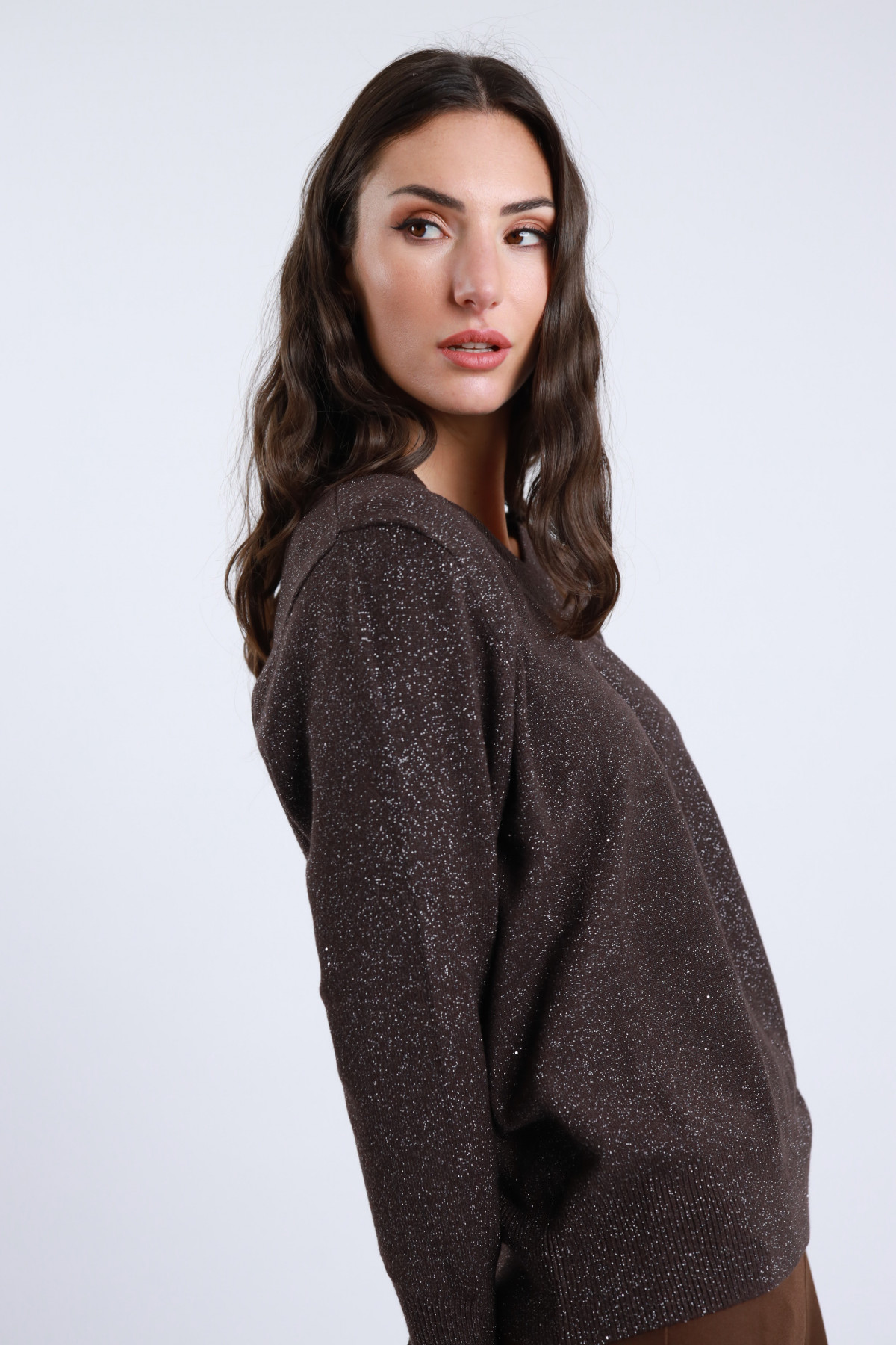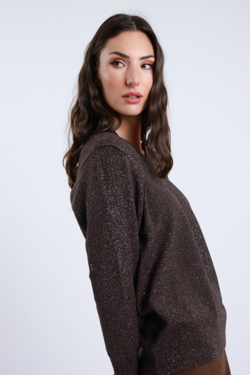 Maglia Cu-Out in Lurex Scollo V e Applicazioni Micro Paillettes.