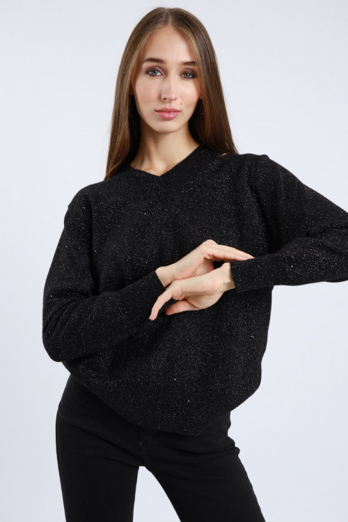 Maglia Cu-Out in Lurex Scollo V e Applicazioni Micro Paillettes.