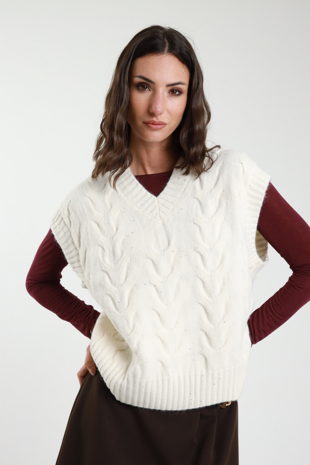 Gilet Scollo a V con Trecce e Micro Paillettes.