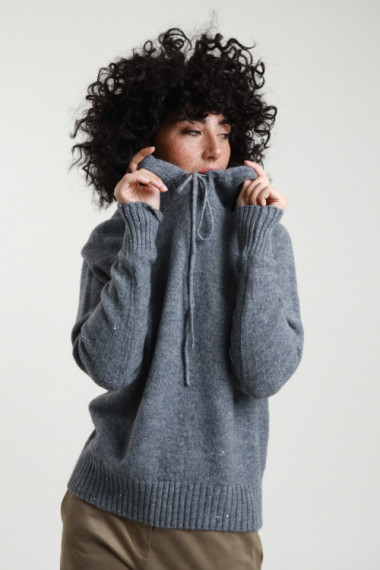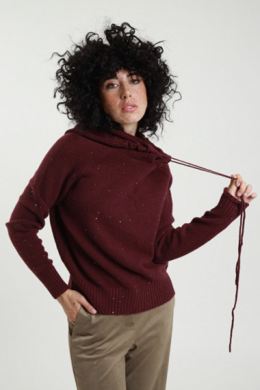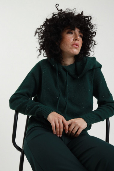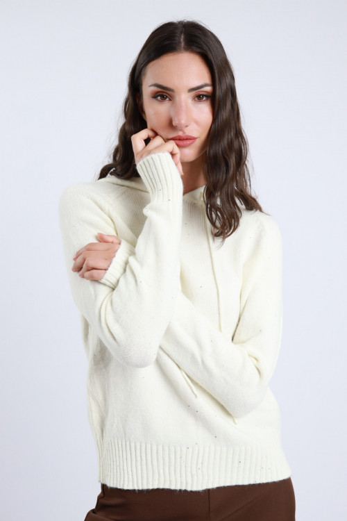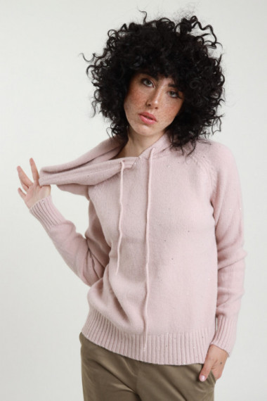 Maglia con Cappuccio e Dettaglio Tessuto Micro Paillettes.