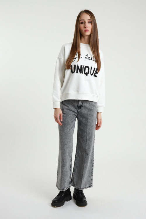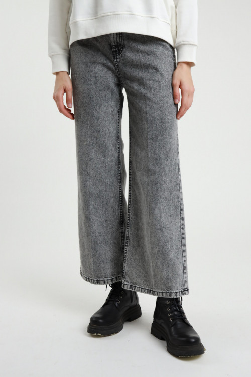 Jeans 5 Tasche a Gamba Dritta Effetto Slavato.