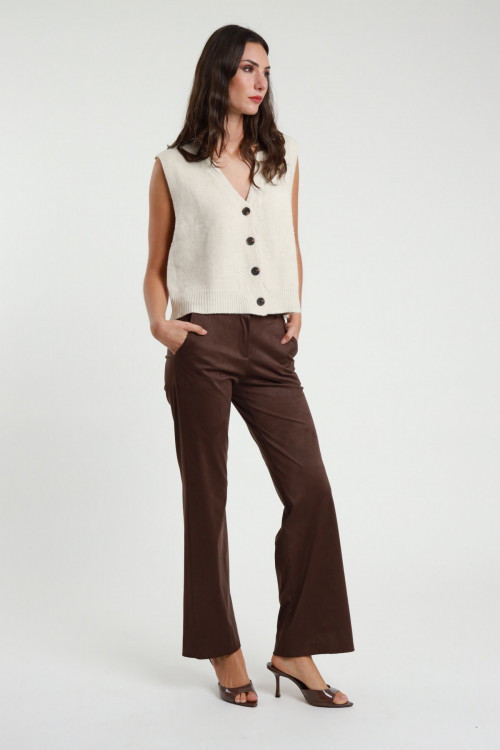 Pantaloni Gamba Dritta Scamosciati, Tasche Laterali e a Filetto sul Retro, Passanti in Vita.