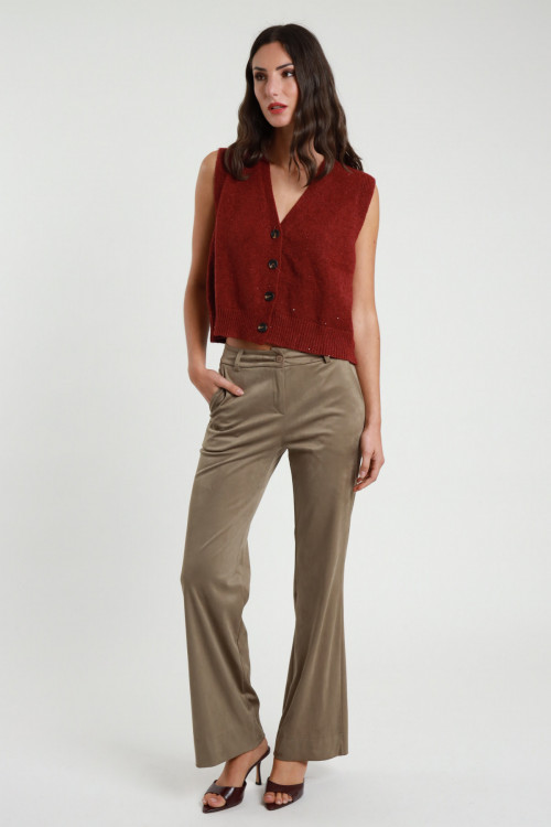 Pantaloni Gamba Dritta Scamosciati, Tasche Laterali e a Filetto sul Retro, Passanti in Vita.