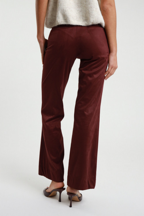 Pantaloni Gamba Dritta Scamosciati, Tasche Laterali e a Filetto sul Retro, Passanti in Vita.