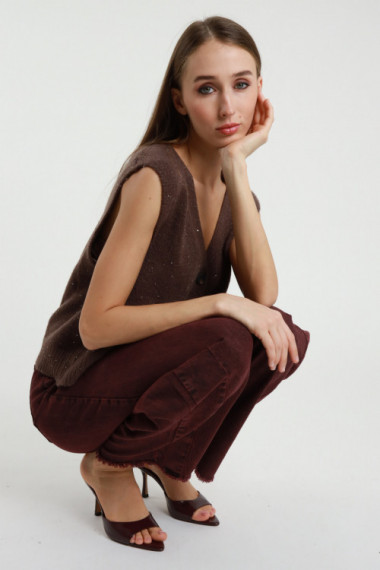Gilet Girocollo in Maglia con Dettaglio Tessuto Micro Paillettes.