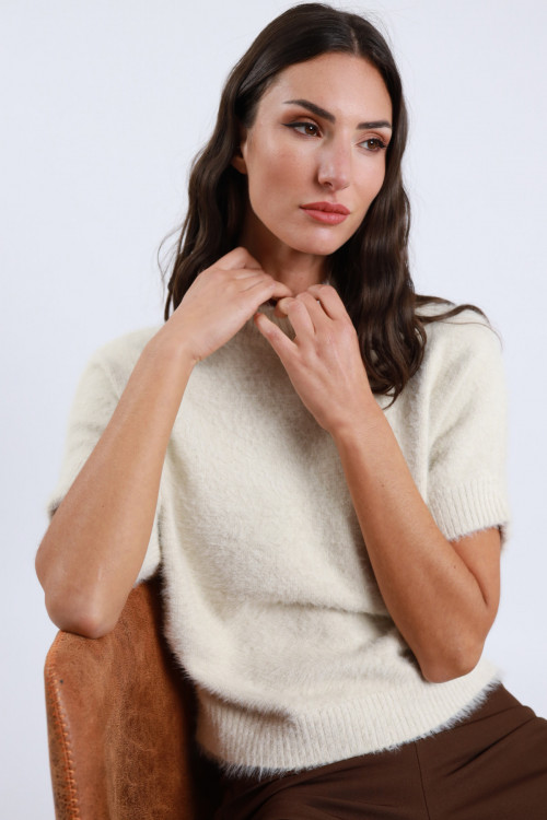 Maglia Girocollo, Maniche Corte Effetto Pelliccia.