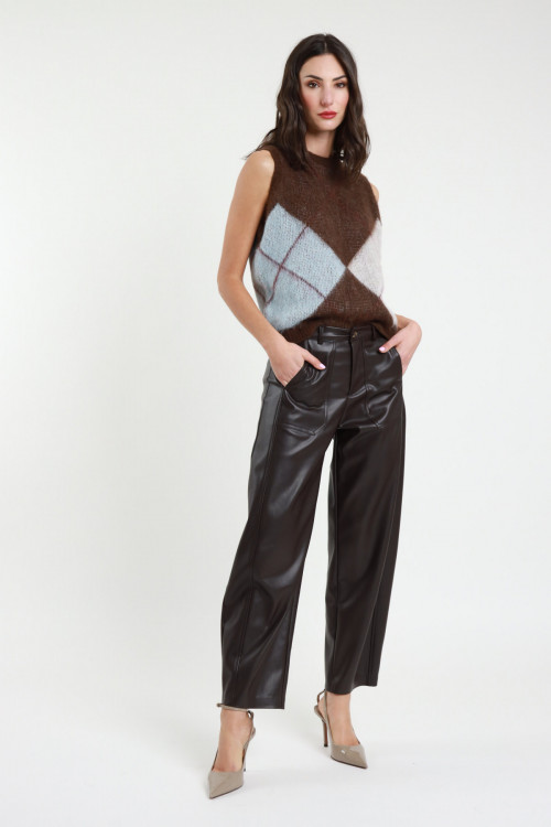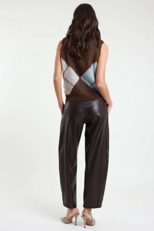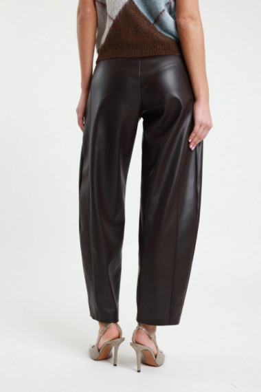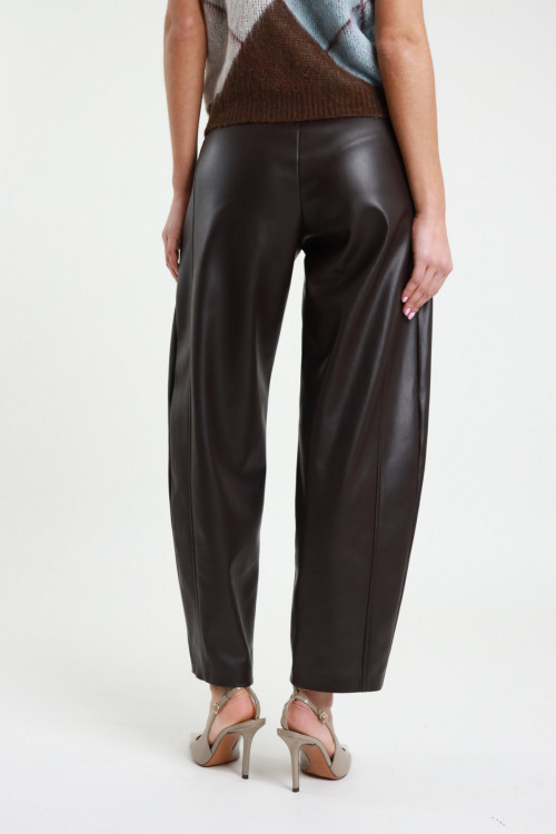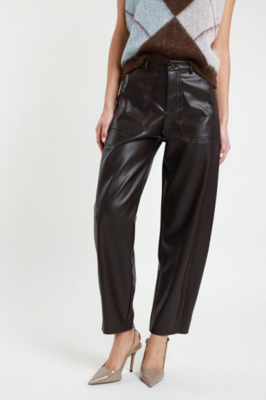 Pantaloni Modello Banana in Ecopelle con Tasconi e Passanti in Vita.