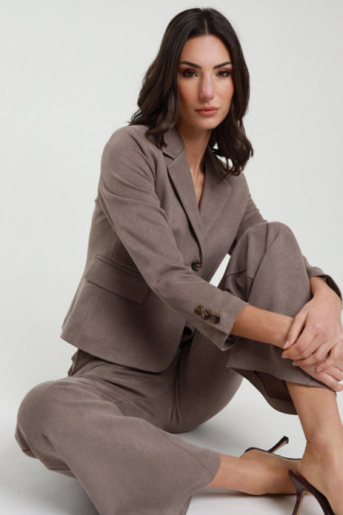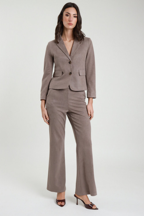 Completo Composto da Blazer Crop Monopetto con Tasche Pattina + Pantaloni Gamba Dritta con Tasche Laterali e Chiusura Zip sul Retro.