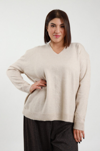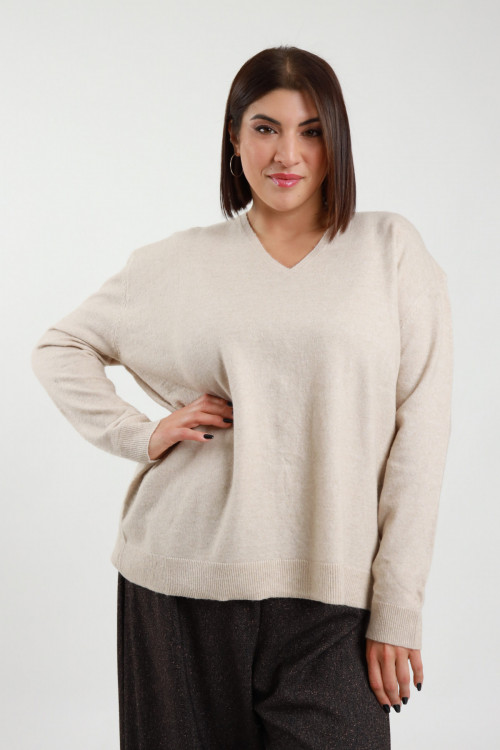 Maglione Over Scollo V con Bordi a Costine - Linea Curvy Susy Star.