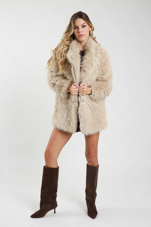 Cappotto Lungo in Ecopelliccia con Tasche Laterali, Senza Chiusura.