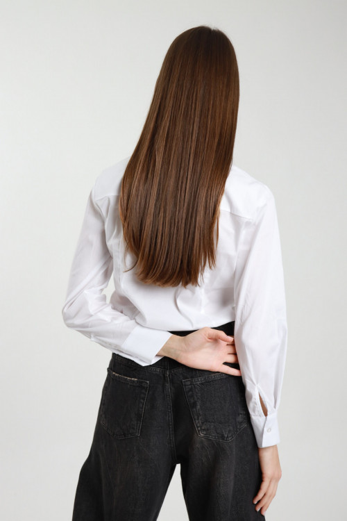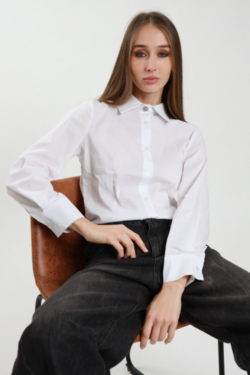 Camicia Slim Elasticizzata con Dettaglio Bottone Gioiello.