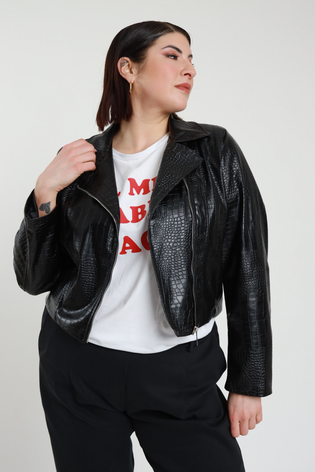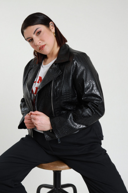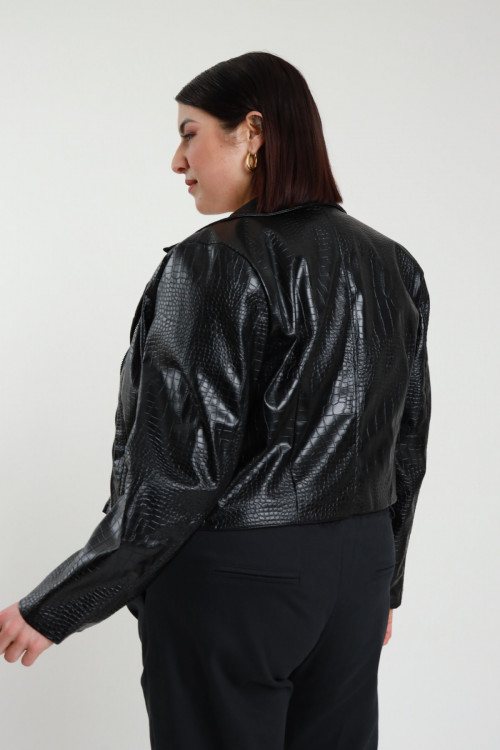 Chiodo Crop Over in Ecopelle Stampa Coccodrillo - Linea Curvy Susy Star.