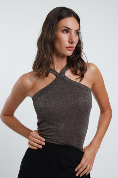 Canotta Scollo all'Americana Incrociato, a Costine in Lurex.