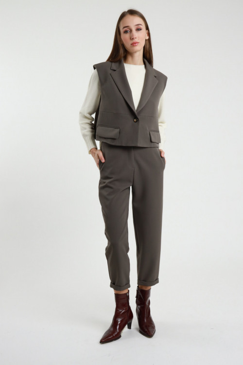 Gilet Crop Over, Chiusura 1 Bottone e Finte Tasche con Pattina.