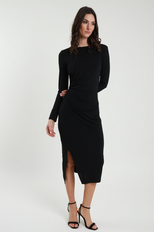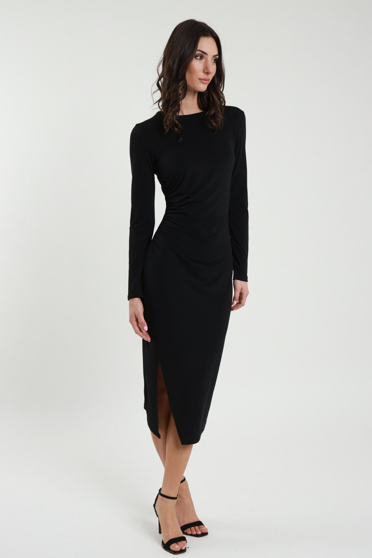 Abito Tubino Midi Elegante con Ripresa sul Fianco e Spacco Laterale.