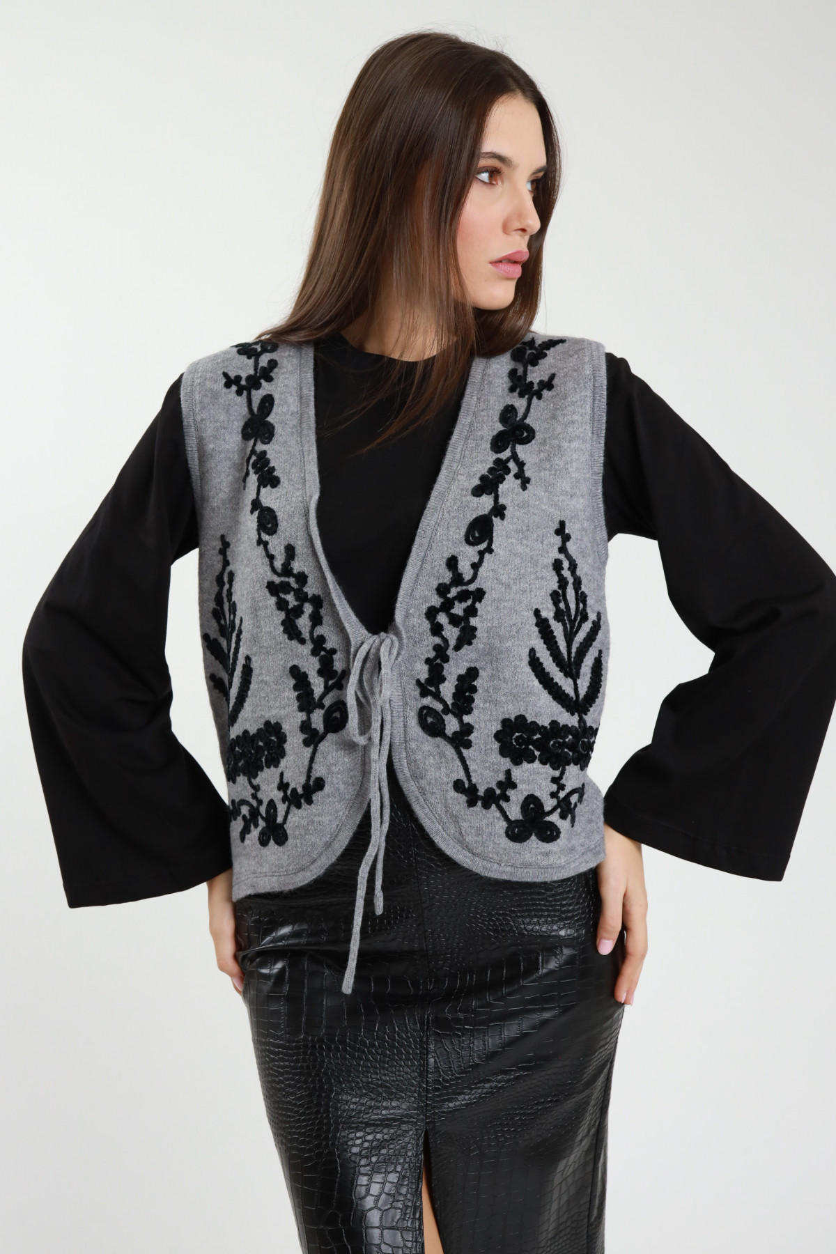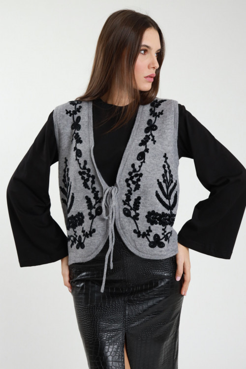 Gilet in Maglia con Ricami e Laccetto.