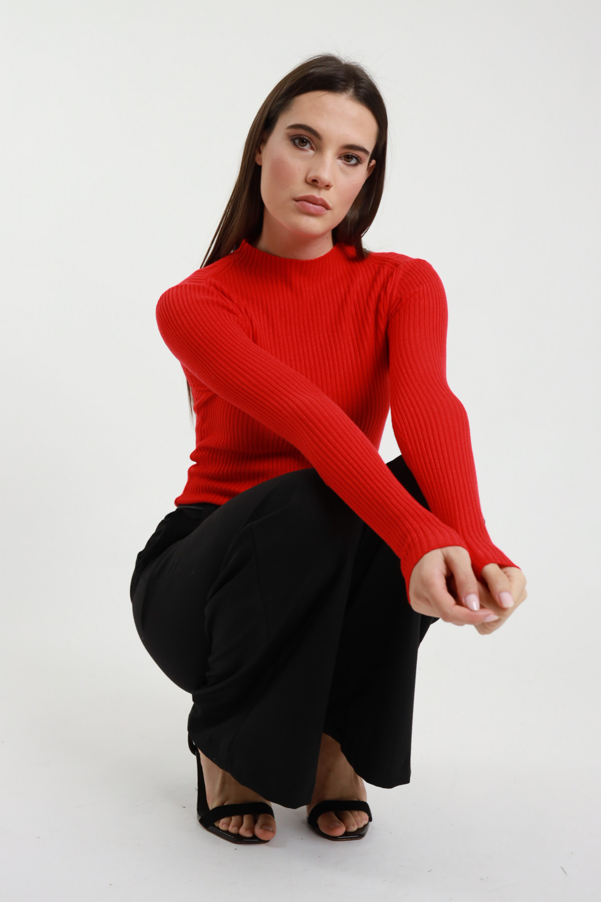 Maglia in Maglia con Zip con Collo Over e Fantasia Check