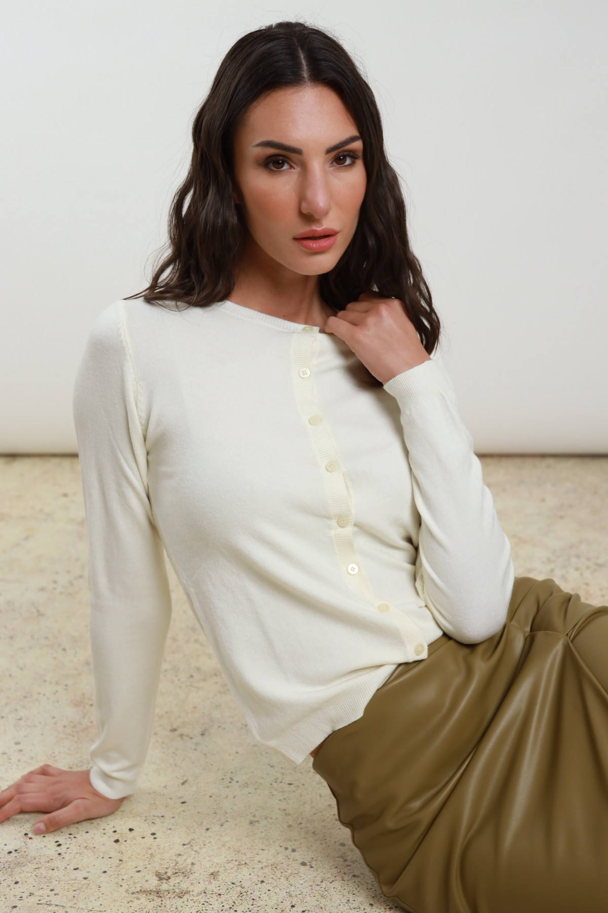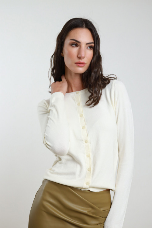 Cardigan Girocollo Chiusura con Bottoni.