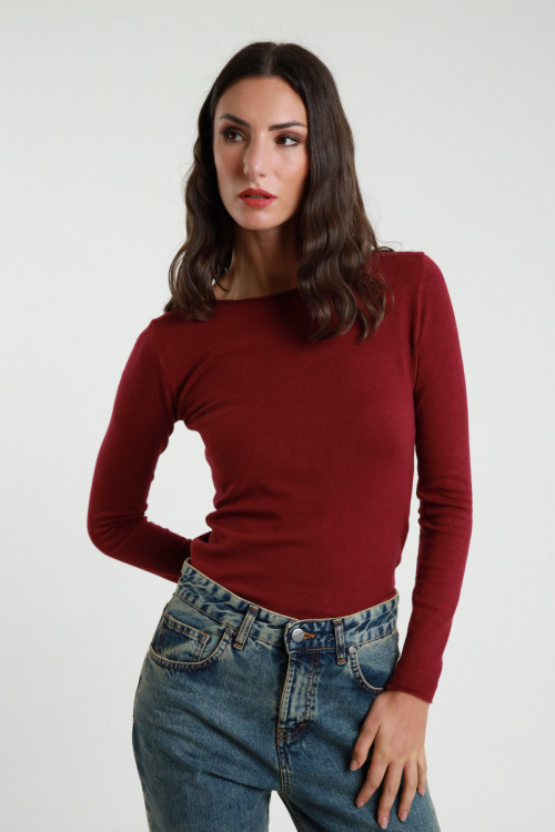 Maglia Slim in Viscosa con Scollo a Barchetta.