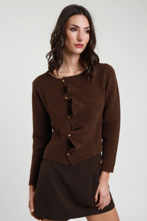 Cardigan Crop con Chiusura Balze e Bottoni.