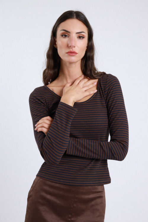 Maglia Elasticizzata a Maniche Lunghe Rigata.