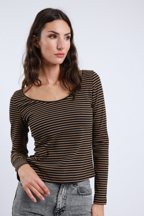 Maglia Elasticizzata a Maniche Lunghe Rigata.