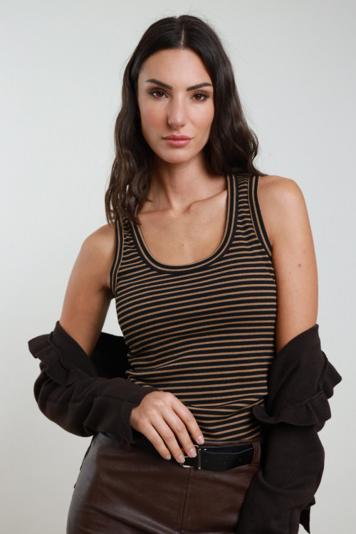 Canotta Scollo all'Americana Incrociato, a Costine in Lurex.